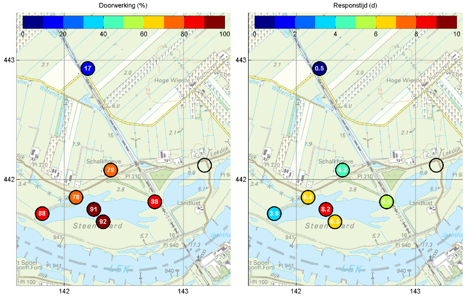 Hierbij zijn de door automatische drukopnemers gemeten (grond)waterstanden gevalideerd, waarna tijdreeksanalyse is uitgevoerd op deze data. De (grond)waterstand in de Steenwaard reageert gedempt op waterstandswijzigingen van de Lek. Met tijdreeksanalyse is aangetoond dat de uiteindelijke reactie afhankelijk is van de afstand tot de Lek, en dat deze reactie in het oppervlaktewater vertraagd is ten opzichte van het omliggende grondwater.